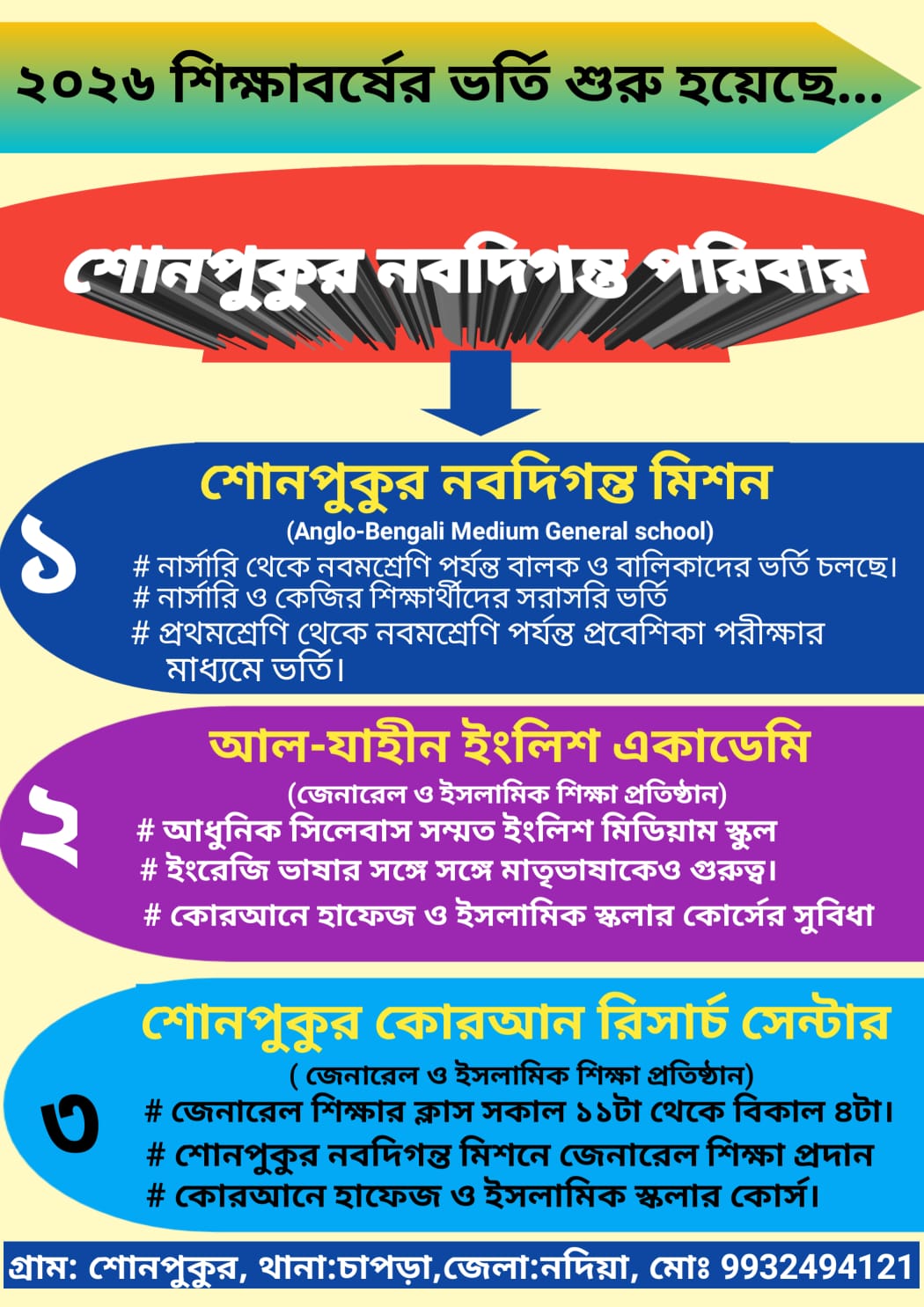 ২০২৬ শিক্ষাবর্ষের জন্য ভর্তি চলছে ।